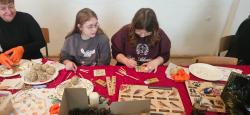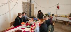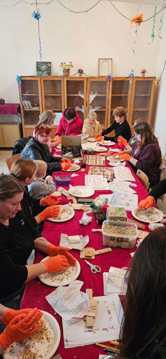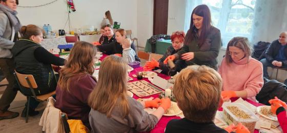 W części praktycznej uczestnicy wspólnie przygotowywali naturalne kulki z karmą dla ptaków. Część z nich została od razu wykorzystana – dwie uczestniczki spotkania, Ola i Nadia, zawiesiły przygotowane kulki w pobliżu świetlicy, tworząc bezpieczne miejsce dokarmiania dla ptaków.